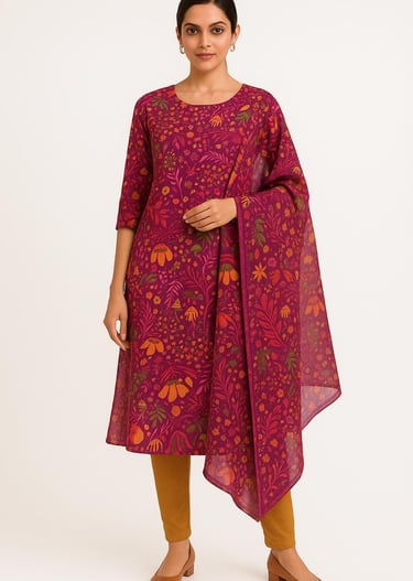 We offer a variety of fabrics, including viscous, nylon, polyester, and custom-made options, along with digital prints and embroidery work.